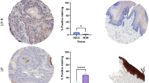 Previous studies have shown a strong correlation between mRNA expression and protein expression, and mRNA upstream regulates protein translation39,40,41. There is a need for consensus on sampling, staining and quantification procedures concerning detection of IRF4 protein expression by IF and IHC staining of tissues from Normal, OSF and OSCC patients to improve reproducibility of studies and confirm bioinformatics results. Here, we detected IRF4 protein expression in different tissues from different patients by IF staining (Fig. 7A,C) and IHC staining (Fig. 7B,D), which showed a consistent, sequential upregulation of IRF4 from Normal buccal mucosa to OSF to OSCC. The results were aligned with previous studies and demonstrated that IRF4 might act as oncogene in transformation of Normal into OSF, Normal into OSCC and OSF into OSCC.