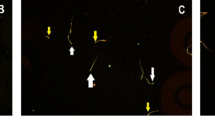 Barroso, G. et al. Mitochondrial membrane potential integrity and plasma membrane translocation of phosphatidylserine as early apoptotic markers: A comparison of two different sperm subpopulations. Fertil. Steril. 85, 149–154 (2006).