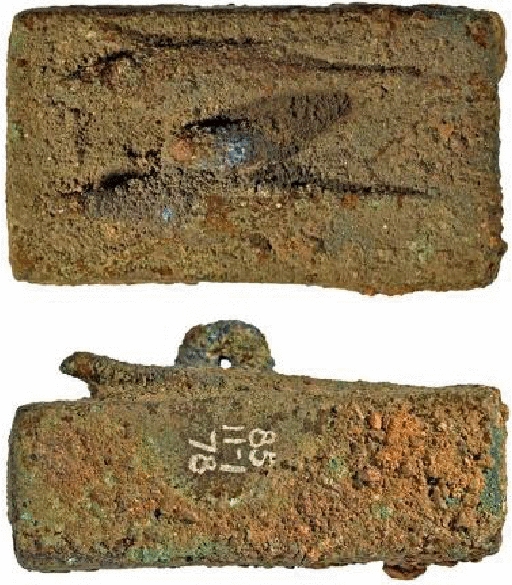 EA49144 | 19 × 14 × 78 | Naukratis | Eel figure, two suspension loops. Drill-hole in sealed opening does not fully penetrate plug | |