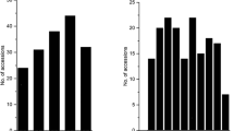 Resistance to P. oryzae (formerly named M. grisea) was analysed in an experimental field at the Institute of Crop Science (NICS). The field had high levels of P. oryzae infection, and the major race was 037.3. The lesion area (percentage of total leaf area) of 60-day-old plants was measured according to the previously described methods54,55. For the assessment of resistance to bacterial blight caused by X. oryzae pv. oryzae, flag leaves of 14-week-old plants in an experimental paddy field were inoculated according to a previously described clipping method56. A bacterial suspension (OD660 = 0.1; 2 × 109 CFU/ml) was prepared, and lesion lengths were scored 20 days after inoculation with virulent Xoo race 2 strains (T7147, MAFF311019).