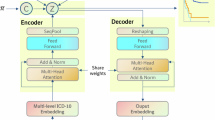 After preprocessing, the model is trained using the training data, and its progress is assessed after each epoch using the validation set. The main product of the training process is a feature space (discussed in more detail in the “Model” section) in which each admission is assigned a feature vector of fixed size, allowing them to be clustered using traditional clustering algorithms within the feature space. Due to randomness in the clustering algorithm, clustering multiple times can result in multiple different clusterings. Each of the produced clusterings is ensured to be robust against minor changes in the input data to improve the robustness of the overall method (see “Clustering” section). Note that the different clusterings are not competing but complement each other to facilitate a more comprehensive understanding of the underlying clinical data. Finally, the clusterings are evaluated, e.g., by analyzing patterns of diagnoses that often co-occur within a cluster.