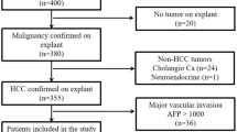 Shindoh, J. et al. Evaluation methods for pretransplant oncologic markers and their prognostic impacts in patient undergoing living donor liver transplantation for hepatocellular carcinoma. Transpl. Int. 27(4), 391–398 (2014).