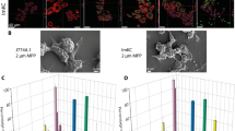 The medium was replaced with medium with or without PPMPs at 1.6 mg/ml, and incubated at 37 °C in 5% CO2 for 24 hours. Cells were washed with phosphate buffered saline (PBS) and fixed in 2% glutaraldehyde (Sigma-Aldrich, USA) for 1 hour. The cells underwent a graded ethanol dehydration series (50, 75, 90, 95, 100%) for ten minutes each. Cells were subsequently immersed in a 1:1 ethanol/hexamethyldisilazane (HMDS, Sigma-Aldrich, USA), 1:2 ethanol/HMDS, and 100% HMDS for 5 minutes each. The samples were mounted on stubs, coated with a layer of platinum, and viewed using an S-3400N microscope (Hitachi, Japan) at 10 kV.