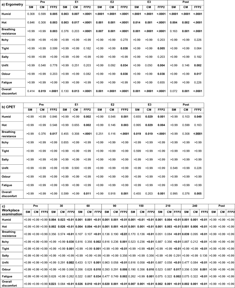 Table 2 Results of statistical analysis of the data from Comfort Score questionnaire in 40 subjects during ergometry (a), CPET (b) and workplace examination (c).