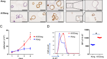 The ESC clone was injected into C57BL/6 mouse embryos at the New York University mouse facility to create chimera mouse lines. All the founder mice were subsequently transferred and housed at the Research Animal Resource Center (RARC) of Weill Cornell Medicine and treated under a protocol approved by the local Institutional Animal Care and Use Committee (IACUC). All the mouse lines were maintained by the RARC, which provided staff and standardized housing facilities to ensure humane care of animals used for this research according to the Animal Welfare Act (updated guideline, National Research Council U.S.A, 2010). The founder mice with a c3GIC9n-BPS allele (BPS; Bap1-Pbrm1-Setd2) were identified, and cross-bred with two established transgenic mouse lines, the TRACK ggt-HIF1A-M3 transgenic mice13, and a tet-Transactivator (tTA) driven by a 2.7 kb γ-glutamyltransferase 1 (ggt) promoter, the ggt-tTA line18. The tTA (Tet-Off system) in this model is driven by the ggt promoter, which is active in the proximal tubules of the kidneys and restricts the expression of Cas9D10A to the kidneys and testis. The in vivo expression of Cas9D10A can be repressed by supplementation of the drinking water with doxycycline (2.0 mg/ml). The ggt-HIF1A-M3 transgene encodes a constitutively active mutant HIF1A and was shown to induce features of early stage ccRCC13. The triple transgenic mice (ggt-tTA, TRACK, BPS) are referred to as BPS-TA mice. To replace the tTA-driven Cas9D10A nickase with a Cre-driven Cas9WT (relying on single rather than paired gRNAs), a breeding program was undertaken to introduce ggt-CreER and LSL-Cas9-P2A-GFP alleles, while removing the ggt-tTA allele from the BPS-TA line. The ggt-CreER facilitates LoxP recombination in response to tamoxifen treatment (intraperitoneal injection of 2 mg tam dissolved in 200 μl cottonseed oil)24,25. The LSL-Cas9-P2A-GFP allele provides expression of a Flag-tagged version of the humanized S. Pyogenes Cas9 (and GFP) in response to CreER activation by tam26. The quadruple transgenic mice (LSL-Cas9-P2A-GFP, ggt-CreER, TRACK, BPS) are referred to as BPS-Cre mice. Note that the BPS-Cre mice also harbor an GFP-IRES-Cas9D10A allele, which remains silent in the absence of a tet regulator. The LSL-Cas9-P2A-GFP line was genotyped with primers Cas9_24500/Cas9_oIMR9020 (WT: 241 bp) and Cas9_38652/Cas9_38651 (TG: 214 bp). Allelic copy number of TRACK, ggt-tTA, and ggt-CreER alleles were determined by real-time qPCR on a MyiQ2 PCR machine using primer-pairs (hHIF1aP564A-F/hHIF1aN803A-R, tta507_F/tta507_R, and CreER.910.F/CreER.1149.R, respectively) (Tables 3 and 4). Phenotypic studies were performed in randomly selected male mice (BPS-TA, n = 19, BPS-Cre, n = 9) that met the predefined genotype criteria with homozygous presence of the c3GIC9n-BPS, HIF1A-M3 and ggt-tTA genes. The sample size of this study was based on previously published work which demonstrated a high incidence of malignant lesions in the kidneys using other gene editing technologies. All mice were monitored by the RARC staff and the investigators for the development of general health defects and adverse events during the experiments. All mice were euthanized without any prior drug treatments by either cervical dislocation or carbon dioxide euthanasia at random time points to perform phenotypic evaluation of the kidneys as well as other organs. Autopsy of animals was performed under sterile surgical conditions in our lab. Primary endpoint of the study was malignant transformation in the kidney, as assessed by a genito-urinary (GU) pathologist. Our study predominantly consists of a qualitative description of the aberrations that we detected in our mouse models as compared to genomic wild type kidneys. We used the Student’s T-Test and Analysis of variance (ANOVA) to determine statistical significance of quantitative differences.