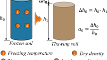 The WDT-100 artificially frozen soil test equipment shown in Fig. 2 was used for the uniaxial test. The stress–strain curve can be displayed in real-time in this test. The maximum loading capacity, minimum temperature, and accuracy of the device were 100 kN, − 50 °C, and 1%, respectively. A computer automatically controlled the loading and collected the data according to the set parameters.