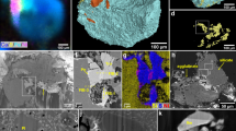 In this work, five lunar simulant samples plus six iron powder samples are selected for evaluation. Of the lunar simulants, four are standard [Lunar Highlands Simulant (LHS-1), Lunar Highlands Dust Simulant (LHS-1D), NASA Johnson Space Center lunar simulant (JSC-1A), and Off Planet Research Highlands simulant with added agglutinates (OPRH4W30)] while one is enriched with iron (OPRL2NS)13, 14, 22. The standard Highlands simulants are specified and provided by NASA to support the target landing location at the lunar south pole, known as the lunar Highlands. Motivation for this work to have relevance across the lunar surface leads to the selection of lunar Mare simulant JSC-1A which is created by NASA Johnson Space Center. OPRL2NS is a new iron-enriched simulant that was formulated specifically for evaluation of its effect on wireless power transfer, as it represents a regolith with a total iron content of 20.0 wt% including both the iron already present in the feedstock materials (in the form of FexOy) and 25 nm metallic iron particles added as an inclusion to the feedstocks. To investigate a “worst case” scenario for wireless charging in the presence of metallic iron, pure iron powders (> 98% pure metallic iron) are included in this study at two particle sizes: FE100, which has particle size of < 150 μm, and FE325, which has particle size of < 45 μm23, 24. Figures 2a,b show NASA’s thin section and scanning electron microscope (SEM) images which illustrate metallic iron particle size and distribution in the regolith. Figures 2c,d show SEM images of OPRL2NS where the 25 nm spherical iron nanoparticles are noticeably dispersed across the surface of underlying base simulant. Finally, Figs. 2e,f show SEM images of the iron powders, FE100 and FE325. Details about the primary chemical composition of all lunar simulants and iron powder samples used in this study are shown in Table 1. Type, mass, and density for all samples are summarized in Supplementary Table S1.