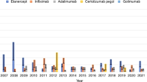 Due to the voluntary reporting nature of the FAERS system, the sample of reports in the FAERS database may be incomplete compared to real population data. FAERS reporting exhibits biases related to its newsworthiness and legal and scientific variables. Due to potential underreporting, some real-world data may be missing from the FAERS database which this study used to conduct its analyses. The changing criteria for AE diagnosis may lead to under or overreporting and affect the reporting frequencies. The frequencies and reporting odds ratios calculated are based on the sample of reports in the FAERS database and may not correspond to real population frequencies25,26. The individual cases were not adjudicated for causality assessment. Further studies may be required to establish the molecular mechanism behind this counterintuitive adverse event to better understand the uses and risks of TNF inhibitor therapies as it relates to RA and psoriasis. Most individual reports do not contain details on the progression of the AEs over time.