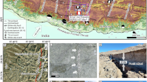 The unconsolidated state of near-surface sediments is another secondary control on rupture termination. The near-surface ruptures across the sediments generally rearranged clasts by rolling and frictional sliding along the boundary of clasts, but clast breakage (cataclasis) also occurs, as revealed by our observations (Figs. 4 and 5) and those of previous studies35. Rupture splays are difficult to trace where the sediment is composed of matrix-supported gravels with a considerable strength contrast between matrix and clast. Furthermore, observing micro-scale cataclasis caused by ruptures in fine-grain sediment is also challenging. This deformation mechanism is defined as granular flow and distributed deformation along incohesive inter-granule parts and is a dominant behavior when a fault cuts through non-lithified sediment under low confining pressure46,47,51,52. At a much larger scale, based on an analysis of surface deformation patterns in the 2013 Mw 7.7 Balochistan, Pakistan earthquake, Zinke et al.7 showed that near-surface deformation in younger or thicker non-lithified sediments tends to be more distributed than deformation in basement rocks and old lithified sediments. In addition, image correlation studies of surface deformation patterns of the 1992 Mw 7.3 Landers and 1999 Mw 7.1 Hector Mine earthquakes suggested that a wider zone of distributed shear occurs where ruptures propagated through loose, unconsolidated sediments53,54. These features indicate that the rupture propagation process is influenced by the physical properties and thickness of unconsolidated sediment, which lack inherited structures to constrain distribution of the newly formed ruptures and have low inter-granular cohesion, favoring distributed deformation. Nevertheless, we emphasize that if the sediment matrix and clasts have similar strength because of weathering and consolidation, cataclasis and localized deformation could occasionally occur in the unconsolidated strata during slip events.