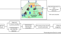 In order to understand the real-time performance of the proposed system, the dirt distribution maps that indicates the type of dirt were generated for two selected test environments by navigating the inspection robot (Supplementary Video 1). The test environments consisted of two different floor patterns. Both environments had a rectangular shape with 175 \(\times\) 250 cm dimensions. The first test environment is a wooden floor with a non-uniform pattern (See Fig. 9a). The second test environment is a uniform floor with grey colour but had a rough surface (See Fig. 9d). For the experiments, we have set the parameters such as lighting conditions, camera angle, camera location and robot’s speed, and the width and the length of the Zigzag path to ensure the complete and effective coverage of the selected area. These parameters were decided through a trial and error and kept constant for both experiments. Insights from this sensitivity analysis have enabled us to find out how to tune the performance of the proposed system. The traced navigation paths of the robot in the first and second environments are shown in Fig. 9b,e, respectively. The resultant dirt distribution maps are shown in Fig. 9c,f for the first and second environment, respectively.