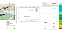 This study is based mainly on data collected during Hydroma’s 2018 exploration program. The study was performed on data from thirteen boreholes, notably Bougou-3, Bougou-4, Bougou-5, Bougou-5A, Bougou-6, Bougou-7, Bougou-8, Bougou-9, Bougou-13, Bougou-14, Bougou-18, Bougou-19, Bougou-20 (the position of the wells can be seen in Fig. 3). All the boreholes were recorded with electrical logs and core data. Twenty-one polished thin sections, Rock–Eval analyses and porosity measurement data were done on twenty-one samples from Bougou-20, Bougou-8, Bougou-18, and Bougou-7. In addition, calcimetric data performed by Exlog with a Bernard calcimeter on 129 samples were also used to identify the different carbonate levels along the deepest well. The Rock–Eval data was carried out at IFPEN and processed by applying the method of Pillot et al.30 to characterize and quantify carbonate contents in the reservoirs. Porosity measurements were also made at IFPEN, with helium being the gas used for porosity measurements. The polished thin sections were made by the Thin Section Laboratory (TSL) and were all made with impregnation by blue resin. An optical study was performed using a microscope for a petrographic and porosity study at the microscopic scale. An Alizarin coloration was done on a thin section according to the method described by Lindholm and Finkelman31. The logging data such as natural gamma-ray GN, bulk density RHOB and Neutron porosity NPHI were corrected, merged, and displayed using Petrel, Geolog and EasyTrace software. The raw data for the logs were provided by Hydroma and were performed by SemmLogging by using their gas chromatograph, gamma, Neutron, and density gamma Probes. In this study, the neutron log was calibrated in a Limestone matrix scale and the density and neutron were displayed in a standard limestone compatible scale.