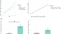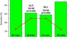 Whilst this study is the first to evidence that bottlenose dolphins are able to use the functionality of eyes (open or closed) as an indicator of human attentional states, our findings are supported by other research demonstrating that dolphins can follow human gaze and pointing gestures42,43,44, as well as responding to human body orientation as a cue of their attention. For example, in two-object choice tasks, dolphins can successfully follow human-directed gaze and pointing gestures42,43, as well as indicating the identity of an object a human is pointing to in addition to its location44. However, they were not successful at following gaze cues when only the eyes were used (with the head stationary)43, and when the objects were placed at different distances away from them (as opposed to laterally in front of them)44. Xitco et al.41 show that dolphins pointed (facing in a direction for 2 s or longer) more towards jars containing food when a trainer was facing them compared to when the trainer’s body was turned away from them. Furthermore, they were significantly more likely to leave the testing apparatus during back-turned trials compared to face-forward trials, and rarely pointed during trials where the experimenter swam away after baiting the jars.