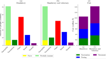 First, medical costs comprised hospitalization and non-hospitalization expenses incurred for the treatment of an actual confirmed case. Hospitalization costs included the amount required for diagnostic testing for COVID-19, treating a confirmed case, and so on. Non-hospitalization costs involved the amount spent for epidemiological investigation, data construction, childcare, and household labor for an infected case24. \({\mathrm{Medical cost}}_{i}\) in time \(t\) for an infected case in age group \(i\) was calculated as the medical cost for an infected case multiplied by the estimated number of confirmed cases (\({h}_{i}(t)\)). Second, intervention cost represented the losses incurred because of COVID-19 prevention efforts, for instance, personal or societal outlays accruing to confirmed cases and their close contacts because of social distancing. \({\mathrm{Intervention cost}}_{i}\) in time \(t\) was evaluated by multiplying the total number of close contacts during the infectious period for every new confirmed case in age group \(i\) (\(\sum_{j=1}^{{n}_{a}}{m}_{i,j}/q\)) and accounting for the average income of age group \(i\) during the isolation period (\({\mathrm{Income}}_{i}/\gamma\)), the rate of labor losses during the isolation period (\(\kappa\)), and the estimated number of confirmed cases (\({h}_{i}(t)\)). Third, the value of a statistical life (VSL) indicates the statistical death cost as dollar units per statistical death during life expectancy37. The cost of death for age group \(i\) in time \(t\) was calculated by multiplying VSL with the remaining life expectancy for those who died of COVID-19. All cost-related parameters are summarized in Table 3.