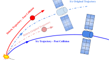 where, \({{\varvec{\upomega}}}_{A}\) is the angular velocity of the satellite after impact, \({{\varvec{\upomega}}}_{B}\) is the angular velocity of the satellite before impact, and \({\text{d}}{{\varvec{\upomega}}}\) is the increased angular velocity of the satellite after impact.