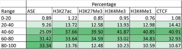 Table 3 For features significant in one tissue, the percentage of times the direction of effect was the same in 0–20,20–40,40–60,60–80 and 80–100% of the other tissues, averaged across three adult cows.