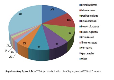 Exploring candidate genes involved in useful metabolic pathways is an important forward step towards better acceptability of the wild and commercial aonla to explore them in selecting superior genotypes. Thus, we developed novel EST-SSRs linked with secondary metabolisms which would be useful in investigating the population genetics, gene mining, population demographics, gene flow, and the genetic resource assessments of P. emblica. These findings would be contributing towards genetic structure of P. emblica, its evolutionary adaptations and genetic relationships among the closely related Phyllanthaceae species.