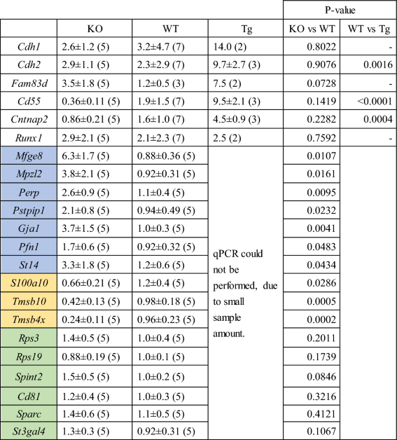 Table 2 Expression levels of genes involved in cell migration and adhesion in Mmp20−/−-AT + (KO), Mmp20+/+-AT + (WT) and Tg(Amelx-Mmp20)-AT + (Tg) cells.