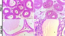 Briefly, the histopathological analysis was performed only in old offspring rats (n = 12 per group) by the pathologist WRS following the criteria described by Bernoulli et al. (2008)51 and Bosland et al. (1998)52. Briefly, four histological sections (per animal) were collected in the range of 200 μm and stained with Hematoxylin and Eosin. The prostate carcinoma in situ was classified as follows: localized carcinoma, loss of cell polarity, presence of nuclear polymorphism, microacini occupying the acinar lumen, and microangiogenesis circumscribing into the prostatic acini.