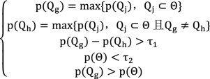 Assuming there exists \(Q_{g}\) and \(Q_{h }\) if \(Q_{g }\) satisfies the decision Eq. (12), the evaluation result is \({\text{X}}^{\prime }\). Otherwise, the decision is rejected. In Eq. (12), \(\tau_{1} \in \left( {0,1} \right)\) and \(\tau_{2} \in \left( {0,1} \right)\) are both thresholds set up for decision-making.