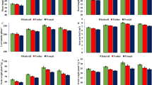 The activity of Ascorbate peroxidase (APX; EC 1.11.1.11) was assayed following the method of Nakano and Asada73. The reaction comprised of 50 mM phosphate buffer (pH 7.0), 10 mM ascorbic acid, 100 nM Na2EDTA, and 1 mM H2O2. The changes in absorbance were recorded at 290 nm. All the enzyme activities were expressed as mg−1 protein min−1.