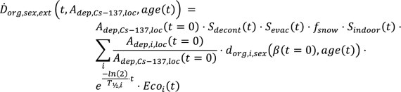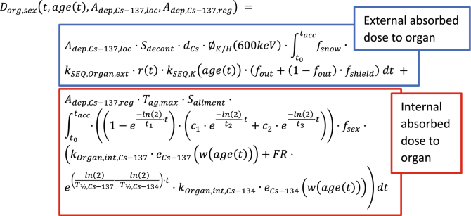 The corresponding expression for a specific organ-absorbed dose, \({D}_{org,sex}\), as a function of 137Cs deposition was given by: