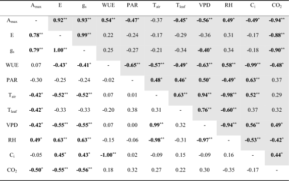 Table 2 Correlation coefficients between photosynthetic parameters of large old Z. serrata and climatic environmental factors during July (summer) and September (fall).