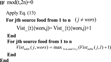 The visit table of food sources is initialized in Eq. (2)