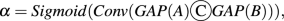 In the channel attention sub-module, as shown in Fig. 4a, we perform global average pooling (GAP) for two inputs A and B, and concatenate them together. Then we use 1D convolution with the stride of C+1 and a Sigmoid activation function to produce the attention weights: