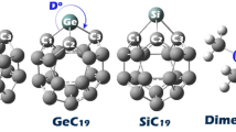 Interactions of various nanotube with biomolecules have also been reported by Mohammadi and his group51,52,53,54,55,56,57,58,59,60. Mohammadi and coworkers explored the binding of fluorouracil with boron nitride (BN), Al-doped boron nitride (Al-BN), and BC2N nanotubes where they reported that fluorouracil adsorbs more effectively with Al-doped boron nitride nanotube than boron nitride (BN) and BC2N nanotubes51. The same group also investigated the effect of Al and Ga atoms doping on the adsorption process of H2SiCl2 over the surface of boron nitride nanotube. They predicted that Ga doped BN nanotube shows higher affinity towards H2SiCl252. He, Ne, Ar, and Kr rare gases interaction with the pristine, Al and Ga atoms doped BN nanotubes using various functionals and basis set in order to devolve a suitable sensor for these gases53. In this study, the authors reported that Al and Ga atoms doped BN nanotubes are better than pristine BN nanotube for the sensing application. The sensing of Nobel gases by pristine and decorated AlN and SiC nanotubes were investigated using DFT calculations and it was found that Ga and Ge-doped nanotubes are potential candidates for sensing of the Nobel gases54. Mohammadi and coworkers performed a theoretical investigation on the interaction of cysteine on pristine BN, Al-doped BN and carbon BN nanotubes to understand various interactions involved between cysteine and above cited nanotubes55. The adsorption of Serine amino acid over pristine fullerene (C60), Si and Ge doped C60 fullerenes were analyzed at B3LYP-D3, ωB97XD, and M062X functionals56. Furthermore, Chlorofluoromethane adsorption process over pristine and Ge doped SiC nanotubes was investigated in order to explore the potential of these nanotubes in development of biosensor57. Besides, the interactions of other bimolecular species with nanomaterials were studies and discussed in detail by Mohammadi and coworkers58,59,60. Ganji and coworkers61 recently reported the interaction between tyrosine and g-Mg3N2 monolayer using DFT simulations where they found that Mg sites are favorable for the significant interaction between tyrosine and g-Mg3N2 monolayer. The authors also ensured the stability of tyrosine@g-Mg3N2 nano-hybrid by molecular dynamics (MD) simulations. Interaction of glycine and metal organic frameworks (MOFs) was analyzed by DFT and the corresponding adsorption energy was predicted − 45.251 kcal/mol62. The binding mechanism of Au32 and C60 cages with 5-Fluorouracil drug was understood by ab initio computations and effect of aqueous medium was also investigated63. Moreover, a theoretical investigation dealing with the functionalization of graphene and ZnO monolayers with mercaptopurine at aqueous media was reported by Aghahosseini and coworkers64. Comprehensive studies using dispersion-corrected density functional theory (DFT) simulations were conducted to investigate the noncovalent functionalization of chitosan with the drug teriflunomide by Tanreh and coworkers65. Recently, we have also reported histamine sensing by B and Si doped fullerenes66.