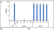 The toxicity assessment of 5-HTR.426 yeast was conducted following the methodologies outlined in Hapairai et al.19 and Mysore et al.41 for D. melanogaster and T. castaneum, respectively. To evaluate toxicity in O. fasciatus and H. convergens the following procedures were employed. Live adult O. fasciatus sourced from Carolina Biologicals (Burlington, NC, USA) were maintained under specified culture conditions. For the toxicity tests, conducted in duplicate, a slurry containing 200 μL of 10% sucrose mixed with red marker dye, along with 50 mg of either 5-HTR.426 or control interfering RNA yeast, was administered to 20 adults, ensuring that the total yeast consumption per insect matched that of the mosquito assays. To facilitate continuous delivery of the slurry over a six-day trial period, a 0.5 mL tube equipped with a wick was suspended from the cage, which was maintained at a room temperature of 21 °C. Verification of feeding was determined by observing feeding bouts and detecting red marker dye in the insect feces42,43. The survival data were analyzed using Fisher’s exact test. Similarly, H. convergens adults (obtained from Carolina Biologicals, Burlington, NC, USA) were reared in cages under room temperature conditions (21 °C) following supplier instructions. Toxicity assays were conducted as described above for O. fasciatus, with a cohort of 10 insects feeding on yeast ATSB provided in a small dish throughout the trial period.