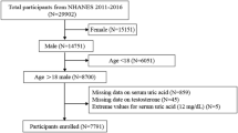 Serum UA has been reported to be linked to lung function, but controversial results have been observed in an epidemiological setting: a few studies have shown a negative association between serum UA and lung function in the general healthy population13,14,15. Meanwhile, only in the female population, the negative association between serum UA and lung function was found in the study by Jeong et al.16. Nevertheless, a positive relationship between serum UA and lung function was observed in a healthy Korean population17. Consequently, this study aimed to investigate the association between serum UA and lung function in the US population using data from the National Health and Nutrition Examination Survey (NHANES 2007-2012).