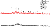 The mineral phases of mortar samples cured for 28 days and 90 days were examined and compared, which are presented in Figs. 19 and 20, respectively. The analysis revealed that calcium silicate hydrate (CSH) is the primary mineral phase in the mortar samples after the cement hydration process, which appears at 42.7° (2θ)16. In addition, the XRD results demonstrated that the major mineral components of the mortar samples are quartz (SiO2) and calcite (CaCO3).