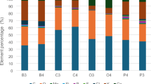 Electrical conductivity and pH were measured in a 1:5 (v/v) material/water extract using a glass electrode. Organic carbon (OC) was determined by using the dry combustion method at 540 °C for 4 h, as specified by25, which involves heating a biochar sample in an oxygen-free environment until it loses all its volatile matter, then weighing the residue and calculating the organic carbon content by subtracting the inorganic carbon content. Organic matter was measured by combustion at 550 °C for 8 h according to26, and total nitrogen (TN) was measured by Kjeldahl digestion (model VAPODEST; range 0.1 mg to 200 g N; Germany)27. Potassium (K) content was determined by atomic absorption (model EMI9783B; range of 190–930 nm; USA), and phosphorus (P) content was determined using the calorimetric method28. The quantities of calcium (Ca), magnesium (Mg), and sodium (Na) were determined by a flame photometer (model Jenway PFP7; range0–160 mmol L−1; USA). Sulfur content was determined by using barium chloride following29.