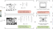 Useful though such conceptual schematics are, they provide no guidance on efficiently encoding information into the b-register or extracting the eventual solution. As Scott Aaronson recognizes in his oft-cited remarks on the “fine print” of quantum algorithms9, this is in part because such determinations are often very difficult problems in and of themselves, and indeed can be so difficult that the issue of transferring information to and from the quantum computer bars use of quantum approaches that would otherwise be preferable to classical variants. For example, obtaining the entirety of \({|{x}\rangle }\) requires O(N) measurements, which requires running the entire HHL circuit O(N) times, thus negating the complexity benefit provided by HHL in the first place. The next subsection introduces two subroutines that we will use to address this issue.