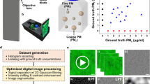 Identifying MPs and assessing water quality have gained increasing public attention11. Chemical and thermal analysis of MPs are the most commonly adopted methods in the laboratory. For instance, Raman spectroscopy can distinguish different types of MPs from the Raman spectra of the samples based on the interaction of light with the chemical bonds of a substance12. Microscopic techniques are also widely utilized for the physical characterization of MPs, providing detailed structural information for identification purposes13. These techniques include stereo, fluorescence, scanning electron, transmission electron, and atomic force microscopy, each with varied imaging capabilities suited to particular applications14. However, while most of the existing analytical methods are advantageous in characterizing MPs in the laboratory, they are generally unsuitable for in in situ detection and high-throughput monitoring of MPs suspended in natural water, as they cannot readily track changes in these particles15. Furthermore, these typical methods often require either complex and expensive facilities, or labor-intensive and time-consuming pretreatments of samples, such as Nile red staining for fluorescent imaging16. To avoid extensive sample preparation in the laboratory, portable devices or technologies need to be developed for fieldwork, and the imaging system should be capable of distinguishing MPs in the aqueous phase, where most of them are found.