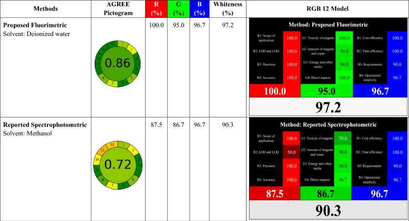 Table 5 AGREE and RGB12 profiles of the suggested method and the reported one.