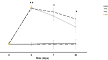 BALs averaged between 184.7 and 255.4 mg/dL across all groups and timepoints (Fig. 2d). MMRM analysis revealed a significant overall effect of diet (F2,28 = 3.8, p = 0.04), time (F3,61 = 3.6, p = 0.02), but not of diet-time interaction (F6,61 = 0.5, p = 0.8). There were no statistically significant post hoc differences (all p > 0.6).