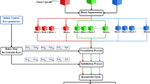 In this phase, the key \({K}_{2}\) is expressed as the orthogonal key matrix, which is created from an equation of a plane as shown in Algorithm 2. After generating key \({K}_{2}\), Hill cipher will be applied to get an array E of same size as D in permutation phase. To generate an array E, firstly the permuted picture is sub-divided into \(D/3\) blocks. These \(D/3\) sub-sections are then multiplying with \({K}_{2}\) separately. After that the result will be arranged in 1-D Array E. Mathematical implementation of substitution phase is discussed in Algorithm 3.