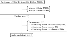 The cross-sectional data is derived from the National Health and Nutrition Examination Survey (NHANES) from 2017 to 2018, involving 9254 participants. NHANES is a national and population-based study in the United States. Based on a complex multistage sampling design, NHANES obtained data on demographics, lifestyle factors and other health outcomes through interviews. The NHANES program was approved by the Ethics Review Board of the National Centre for Health Statistics (NCHS). After excluding participants with missing data, we finally included 3227 participants (Fig. 1). Complete details about NHANES can be accessed from https://www.cdc.gov/nchs/nhanes/index.htm.