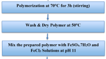 In the last decade, magnetic nanomaterials (MNPs) have been used to treat water containing heavy metals, pesticides, and dyes. Magnetic nanoparticles, including magnetite (Fe2O3), maghemite (Fe3O4), and zero-valent iron at the nanoscale, have many applications in medicine, water treatment, and biology23,24. For instance, Shokri and Sanavi Fard25 used Fe2O3/SiO2 to remove chlorophenol. Shokri and Sanavi Fard concluded that the maximum amount of removal occurred at a mass ratio of H2O2 to CP = 4.96, time = 30 min, and catalyst dosage = 4.5 g. In this study, the maximum removal of chlorophenol was 98.9%. In another study, Liu et al.26 investigated Fe2O3-impregnated chitosan beads as an adsorbent to remove As. They reported that the maximum capacity of the adsorbent at a pH of 5 and temperature of 30 °C was 9.355 mg g−1.