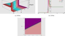 A soliton is a specific type of solitary wave that acts as a particle and keeps its individuality if it interacts with another soliton. It is necessary to comprehend these individual waves to comprehend the dynamics of waves. Typically, a single soliton solution is referred to as a “solitary wave”. Solitons offer stable solutions for NLPDEs if the impacts of scattering and nonlinearity are completely balanced12. The concept of solitons has grown to be an exciting field of study and played a major impact on the recent developments in the telecom sector. Fibre optics has demonstrated the effectiveness of solitons in transmitting digital messages over vast distances without dispersing13,14. Various analytical and numerical techniques have been used for the solutions of nonlinear models, such as; the khater technique15, the unified technique16, the \(\frac{G'}{G}\) technique17, the Hirota bilinear technique18, the extended \(\tanh \)-function scheme19, the \(\textrm{F}\)-expansion technique20, the modified simple equation method21, the homotopy perturbation technique22, the modified variational iteration technique23, the sine-Gordon expansion technique24 and the direct algebraic technique25 and so on26,27,28.