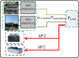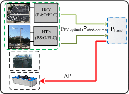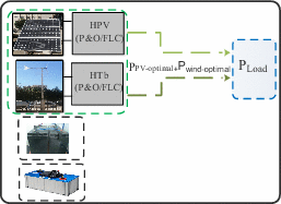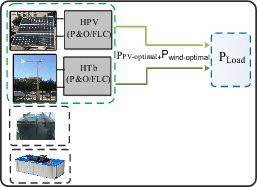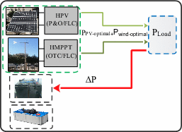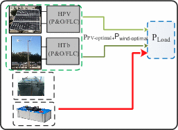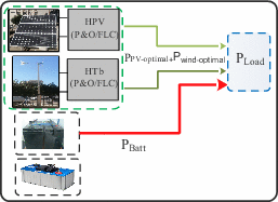 Mode 1 (M1) | \(\Delta {\text{P}} = 0\) \({\text{P}}_{{{\text{Load}}}} = {\text{P}}_{{{\text{pv}} - {\text{optimal}}}} + {\text{P}}_{{{\text{wind}} - {\text{optimal}}}}\) \({\text{SOC}}_{{{\text{Batt}}}} \ge {\text{SOC}}_{{{\text{Batt}}\_{\text{max}}}}\) | |
