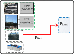 Mode 8 (M8) | \(\Delta {\text{P}} < 0\) \({\text{P}}_{{{\text{pv}} - {\text{optimal}}}} + {\text{P}}_{{{\text{wind}} - {\text{optimal}}}} > 0\) \({\text{P}}_{{{\text{Load}}}} = {\text{P}}_{{{\text{pv}} - {\text{optimal}}}} + {\text{P}}_{{{\text{wind}} - {\text{optimal}}}} + {\text{P}}_{{{\text{Batt}}}}\) \({\text{SOC}}_{{{\text{Batt}}}} > {\text{SOC}}_{{{\text{Batt}}\_{\text{min}}}}\) | |