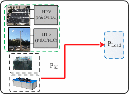 Mode 2 (M2) | \(\Delta {\text{P}} = 0\) \({\text{P}}_{{{\text{Load}}}} = {\text{P}}_{{{\text{pv}} - {\text{optimal}}}} + {\text{P}}_{{{\text{wind}} - {\text{optimal}}}}\) \({\text{SOC}}_{{{\text{SC}}}} \ge {\text{SOC}}_{{{\text{SC}}\_{\text{max}}}}\) | |