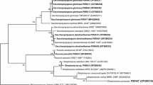 Bio-fertilizers are natural substances that contain living microorganisms, which applied to the soil or plant, enhance its fertility and promote plant growth. The microorganisms surviving in bio-fertilizers can improve nutrient uptake by plants, solubilize phosphorus, and are considered as a source of many bioactive secondary metabolites against several plant pathogens7. During the production process for bio-fertilizers, a high temperature (⁓60–75 °C) and low oxygen content were detected in the compost pile. This condition is not conducive to the survival of aerobic microorganisms. Thus, actinomycetes living in the bio-fertilizers are expected to be different from other actinomycetes. Strain FMUSA5-5T was isolated from a bio-fertilizer of Musa spp. collected from Suphanburi province, Thailand. The strain could grow well on ISP 2, ISP 3, and nutrient media. Moderate growth was detected on ISP 4, ISP 5, ISP 7, and Czapek’s sucrose. The growth was poor on ISP 6. The color of substrate mycelium was dark reddish-brown on ISP 2 medium. Aerial mycelium was hardly observed on any media tested for 14 days, but white aerial mycelium could be observed on ISP 2 after 30 days of cultivation at 30 °C. Light brown to reddish brown diffusible pigments were detected on ISP 2, ISP 3, ISP 4, ISP 5, ISP 6, Czapek’s sucrose and nutrient media (Table S1). Strain FMUSA5-5T produced a cluster of rod-shaped spores (0.8–1.0 × 1.0–2.0 µm) with hairy surfaces borne directly on aerial mycelia (Fig. 1). Whole-cell hydrolysates of strain FMUSA5-5T contained meso-diaminopimelic acid along with ribose, glucose, mannose, and madurose as the cell-wall sugars. It is known that madurose (3-O-methyl-D-galactose) is the diagnostic sugar found in Nonomuraea species3. Phosphatidylethanolamine (PE), phosphatidylmethylethanolamine (PME), phosphatidylglycerol (PG), phosphatidylinositol mannoside (PIM), three phosphoglycolipids (PGLs), and five unidentified phospholipids (PLs) are the phospholipids which match quite well with those reported by Minnikin et al.8 for the genus Nonomuraea (Fig. S1). MK-9(H4) (70.6%) and MK-9(H2) (16.5%) were the major menaquinones while MK-9(H0) (8.6%) and MK-9(H6) (4.3%) were detected as minor components. Whole-cell fatty acid analysis revealed strain FMUSA5-5T contained primarily iso-C16:0 (19.4%), 10-methyl C17:0 (15.8%), C16:0 (10.2%), C17:0 (7.1%) (Table S2). The fatty acid pattern was similar to those of closely related Nonomuraea type strains, N. candida DSM 45086T and N. gerenzanensis DSM 100948T. The morphological and chemotaxonomic properties of strain FMUSA5-5T revealed characteristics that are typical of the genus Nonomuraea3. The 16S rRNA gene sequence of strain FMUSA5-5T was first calculated for the 16S rRNA gene similarity using EzBiocloud server and demonstrated that strain FMUSA5-5T shared the highest 16S rRNA gene sequence similarity to N. candida HMC10T (98.8%), and N. aridisoli KC333T (98.8%), followed by N. gerenzanensis ATCC 39727T (98.7%). In contrast, the taxonomic position of strain FMUSA5-5T in NJ, MP, and ML trees formed a distinct clade with all closest relatives, N. candida HMC10T, N. aridisoli KC333T, and N. gerenzanensis ATCC 39727T (Figs. S2–S4). To confirm the taxonomic position of strain FMUSA5-5T, the genome-based taxonomy was analyzed. The draft genome size of strain FMUSA5-5T consists of 12.4 Mbp (187 contigs and N50 of 187.1 kbp) with a genomic G + C content of 71.5%. The genome contains 11,583 predicted genes, including 11,142 protein-coding genes, 63 tRNA genes, and 2 rRNA genes (one 16S and one 23S) and exhibited approximately 31 biosynthetic gene clusters and was rich in biosynthetic gene clusters for terpenes, type I polyketide synthase, and nonribosomal peptide synthases (NRPS) (Tables S3, S4). Other genomic features of strain FMUSA5-5T and related type strains were summarized in Table S5. The genome of strain FMUSA5-5T and its closely related type strains, N. candida NRRL B-24552T, N. aridisoli KC333T, N. gerenzanensis L70T, were found to contain the clusters of type I polyketide synthase (T1PKS), type II polyketide synthase (T2PKS), type III polyketide synthase (T3PKS), NRPS, terpene, LAP, and NI-siderophore. By comparing the results of N. candida NRRL B-24552T, strain FMUSA5-5T was not found to have lanthipeptide-class i, lanthipeptide-class ii, ranthipeptide, lipolanthine, and thioamitides gene clusters. Compared with N. aridisoli KC333T, strain FMUSA5-5T was not found to have the clusters of lanthipeptide-class i, and thiopeptide. In contrast, the beta-lactam, ectoine, and butyrolactam gene clusters were only detected in the genome of N. gerenzanensis L70T (Fig. 2). A codon tree based on multilocus sequence alignment of 100 conserved single-copy genes, which were detected among closely related Nonomuraea genomes publicly available on the autoMLST server, showed the same result compared with the phylogenomic tree obtained from TYGS that the taxonomic position of strain FMUSA5-5T formed a distinct phylogenomic line with N. candida NRRL B-24552T, N. aridisoli KC333T, and N. gerenzanensis LT70T, implying that strain FMUSA5-5T was different species of these closest neighbors (Fig. 3 and Fig. S5). Furthermore, average nucleotide identity (ANI), average amino acid identity (AAI), and digital DNA–DNA hybridization (dDDH) values between strain FMUSA5-5T and its three closest type strains were in the range of 82.8–88.3% for ANI, 79.4–87.3% for AAI, and 29.5–38.5% for dDDH, which were lower than the recommended threshold values for prokaryotic species delineation (Table S6)9,10. These genome-based taxonomic details revealed the taxonomic position of strain FMUSA5-5T that it was a different species of N. candida NRRL B-24552T, N. aridisoli KC333T, and N. gerenzanensis LT70T and could be considered to represent a new species of the genus Nonomuraea. Although the genome-based taxonomic data presented that strain FMUSA5-5T was a different spec