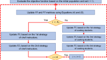 The second stage of the LCA update is based on the children and their mother selecting the chef, followed by watching a YouTube video to learn the chef’s style of cooking (Fig. 2). The selection of chefs is done by choosing a number of the best members from the mother population. The number of chefs is denoted by \(N_{Cf}\) which is decided using the formula \(N_{Cf} =\lfloor 0.1\cdot N_{MO}\cdot (1-\frac{t}{T})\rfloor \). The population members will move to the local search after selecting the chef and learning about their various cooking techniques. The \(N_{Cf}\) members of the LCA population are chosen as chefs in each iteration based on a comparison of the values of the objective function, as given in Eq. (7). This phase demonstrates the power of LCA to exploit global search.