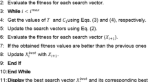 The modelling of biological sciences and genetics and the use of evolutionary operators like natural selection are the basis of evolutionary-based optimization algorithms7. One of the first evolutionary-based optimization algorithm, the genetic algorithm (GA)8, has been developed using selection, crossover, and mutation sequence operators and a model of the reproductive process. Another popular evolutionary-based optimization algorithm called differential evolution (DE)9 has been developed as a powerful and quick method to solve problems in continuous spaces and has a strong capacity to optimize non-differentiable nonlinear functions. Some other algorithms in this group, such as cultural algorithms (CAs)10, Biogeography-Based Optimizer (BBO)11, invasive tumor growth (ITGO)12, and learner performance behaviour (LPB)13. The development of swarm-based optimization algorithms is focused on simulating the natural behaviours of creatures such as animals, insects, ocean animals, plants, and other living things. One of the most commonly used swarm-based algorithms is Particle Swarm Optimization (PSO)14, which takes its inspiration from the reasonable behaviour of fish and birds. The Grey Wolf optimization (GWO)15,16,17 has been created using hierarchical leadership behaviour modelling as well as grey wolf hunting tactics. Ant colony optimization (ACO)18 was created by modelling the behaviour of ant swarms in order to determine the shortest route between a food source and a nest. The humpback whales use of bubble nets for hunting served as inspiration for the Whale optimization algorithm (WOA)19. Tunicate Swarm algorithm (TSA)20, Crow Search Algorithm (CSA)21, Raccoon optimization algorithm (ROA)22, Tree seed algorithm (TSA)23, Marine predators algorithm (MPA)24, Capuchin search algorithm (CapSA)25, Chameleon Swarm algorithm (CSA)26, and Aquila optimizer (AO)27 are other swarm-based algorithms28,29,30,31,32,33,34,35.