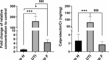 Patients provided 3 urine samples 10 ml each from MSU for examination; catheter urine was obtained from patients who had an urinary catheter. The sample for the measurement of calprotectin concentrations was stored in a freezer (− 80 °C) until measurement, the second urine sample was examined directly after acquisition from the patient in the hospital laboratory (dipstick, quantification of proteinuria using a protein- and albumin-creatinine quotient in the spontaneous urine) and the third sample was used for microbiological examination within the urine culture following the usual processing technique. For the detection of pyuria, urine dipstick analysis Combur-Test 10® from Roche13 was used without microscopic examination and for the detection and identification of uropathogenic bacteria, solely urine culture was performed without the use of a Polymerase chain reaction-based molecular assay14. In order to exclude bias of the results of the two groups due to antibiotic treatment, the inhibitor test was used2. The determination of the protein- or albumin-creatinine quotient (PCR, ACR) is a less time-consuming and simpler test compared to the 24-h urine collection. Spontaneous urine is utilised for this purpose, which allows the test to be performed at the time of the patient's examination. Albumin, protein and creatinine are quantified in the spontaneous urine and an indication in mg/l is obtained. Protein and albumin are then set in relation to the creatinine excretion for the respective quotient and an indication in mg/g creatinine is obtained. Many studies have shown that the quantification of proteinuria using PCR is almost equivalent to the determination in 24-h urine collections. The determination of PCR for the investigation of proteinuria and for monitoring chronic kidney disease has been included in the KDIGO guidelines15. A PCR of > 200 mg/g creatinine is the cut-off value for detecting proteinuria15. PCR/ACR serves to exclude renal insufficiency in this study. The determination of the urinary calprotectin concentration was performed using enzyme-linked immunosorbent assay (ELISA) kit (PhiCal® Calprotectin, catalog number K 6928, Immundiagnostik AG, Bensheim, Germany) according to the manufacturer’s protocol16,17. Creatinine, CRP and leucoyte count were determined in all patients on hospitalisation by validated standard clinical blood tests of serum samples respectively Ethylenediamine tetraacetic acid (EDTA).