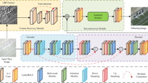 The residual dense module and hybrid attention module utilized in Fig. 1 are shown in Fig. 5. We utilize the residual dense module to extract features. It uses two cascading \(3\times 3\) convolutional layers with BN and LeakyReLU as a basic module. Four basic modules and skip connections constitute the residual dense module. The two \(3\times 3\) convolutional layers enhance the capture of feature information in linear space. Additionally, the inclusion of BN and LeakyReLU layers serves to bolster the robustness and generalization of the model, augmenting its nonlinear capabilities. We incorporate skip connections within the basic module to preserve features from shallower layers of the network. To enhance the focus of the network on crucial features, we also designed a hybrid attention module connected with the residual dense module. In the hybrid attention module, the initial step involves applying a \(1\times 1\) convolutional layer to adjust the feature map channels, and a parallel convolution to compute the spatial feature maps’ weight. The parallel convolution consists of two branches. One branch comprises convolution consists of two branches. One branch comprises two \(3\times 3\) convolutions whose dilation rates are 1 and 4, along with ReLU. The other branch consists of a \(7\times 7\) convolution whose dilation rate is 1, a \(3\times 3\) convolution whose dilation rate is 2, and a ReLU activation function. Subsequently, an additional \(1\times 1\) convolutional layer is employed to alter the channel count, alongside the utilization of the sigmoid function to normalize the spatial weight. The spatial attention feature map is derived by multiplying the spatial weights with the input feature map. Secondly, to derive the channel weights, we employ an average pooling layer and two \(1\times 1\) convolutions for down-sampling and up-sampling in the channel dimension, respectively. The second sigmoid function is also utilized to normalize the channel weight. The channel weights multiplied by the input spatial attention feature map result in the final feature map of the hybrid attention. In the end, we utilize two \(3\times 3\) convolution to further capture features and \(1\times 1\) to adjust the channel number.