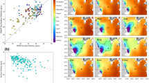 Figure 4c shows the interannual variations in preconditions considered unfavorable for the offshore spreading of coastal water. They can potentially block the spread of coastal water. Freshwater discharge from Changjiang River is known to flow into the East China Sea at 31.5° N, 122° E and along the Japanese coast, and for maximum discharge during summer–autumn8,28, 29 (Fig. S1). If the inflow defined as northeastward salt transport across the Tsushima Strait with a reference salinity of 34.0 from the model (black line) is weak, it would be difficult for Japanese coastal water to spread offshore due to the adjustment of the geostrophic current with a large horizontal density gradient. Moreover, if the previous winter sea surface mixing derived by atmospherically forced cooling (blue line) were intense, mixing with more saline water in the subsurface layer could favor an increase in salinity of the surface layer, again promoting the geostrophic adjustment. Furthermore, if river water discharge near the Japanese coast as a source of coastal water fluctuation by precipitation (green line) is weak, it might also be difficult for the coastal water to spread. The results qualitatively showed that spreading tended to be weak in years when at least two or more of these adverse conditions coincided (Fig. 4c). In 2012, the inflow of freshwater from the Changjiang River in the last summer and autumn was weak, with low precipitation and snowfall in the preceding winter resulting in unfavorable conditions for the spread. In 2015, the weak inflow of the Changjiang diluted water and the intense surface mixing in the previous winter resulted in poor spreading conditions. In the present study, these three conditions were treated as independent, but perhaps there is a relationship between them. This is a subject for future works.